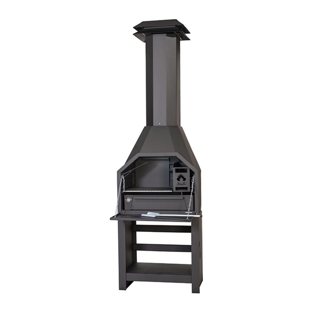 Home Fires Braai FS800 freistehend mit Stahlgestell-Brennholzlager