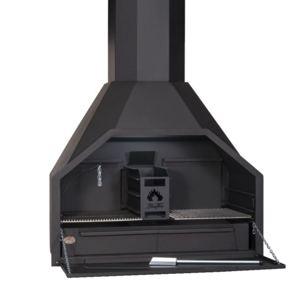 The Braai FS1200 is supplied with a black steel chimney pipe and a chimney-head.