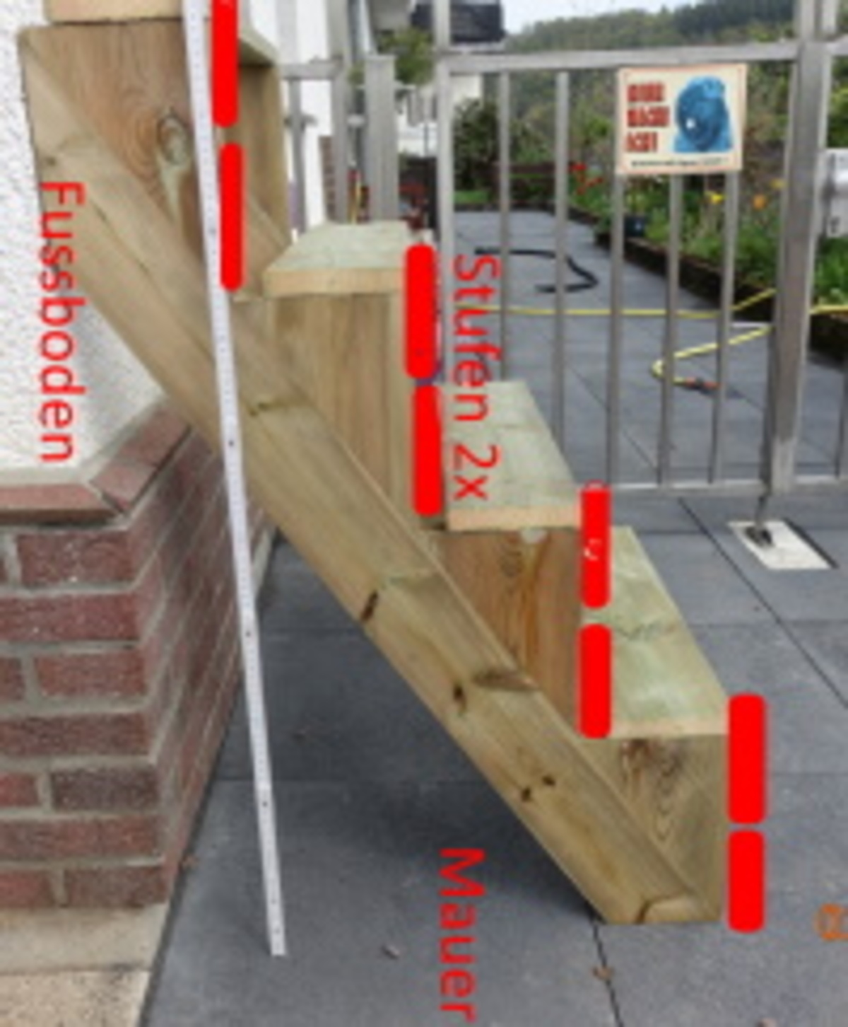 We've placed red marks where the step boards are supposed to be screwed on the stringers. All you have to do is turn them around so that everything suddenly becomes logical ;-)