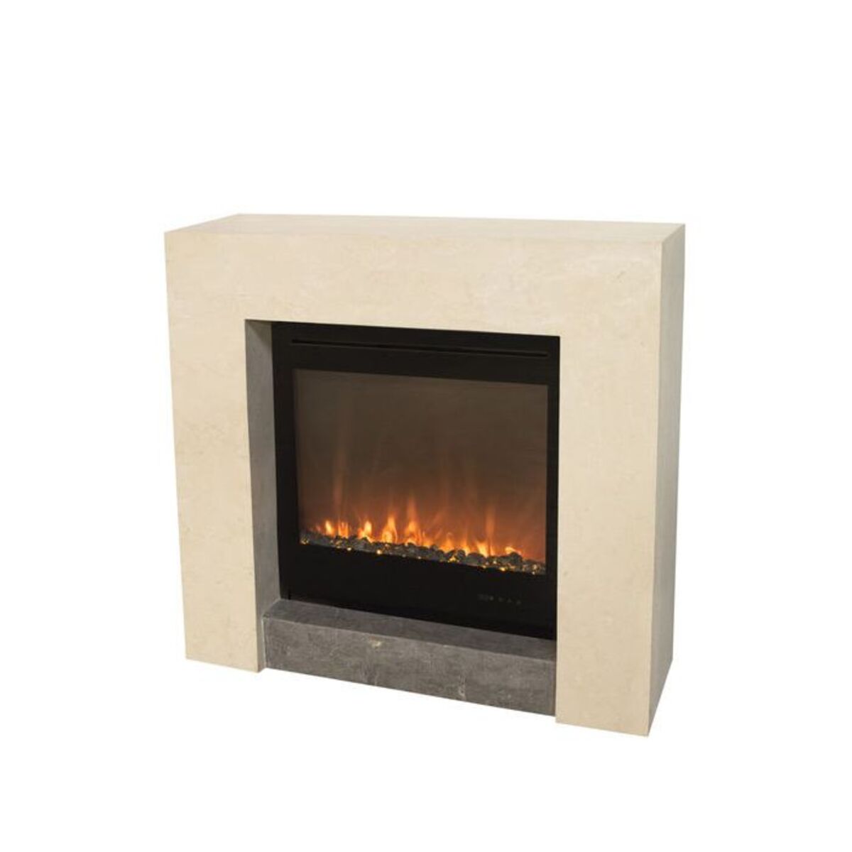 The Milos fireplace is modern and sleek. the fireplace combines two colors of natural stone. white and grey. The depth of the fireplace gives a beautiful fire image. Can be used with different inserts.