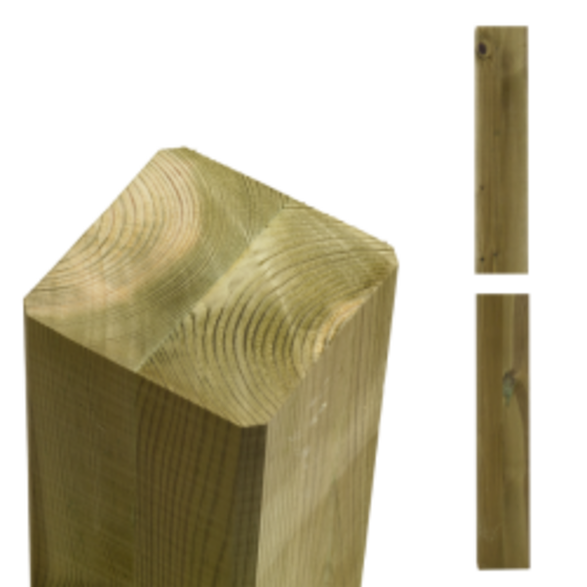 Pressure treated pine 9x9cm (3,54 inch) for a max free span of 3 meters (9ft + 10 inch)