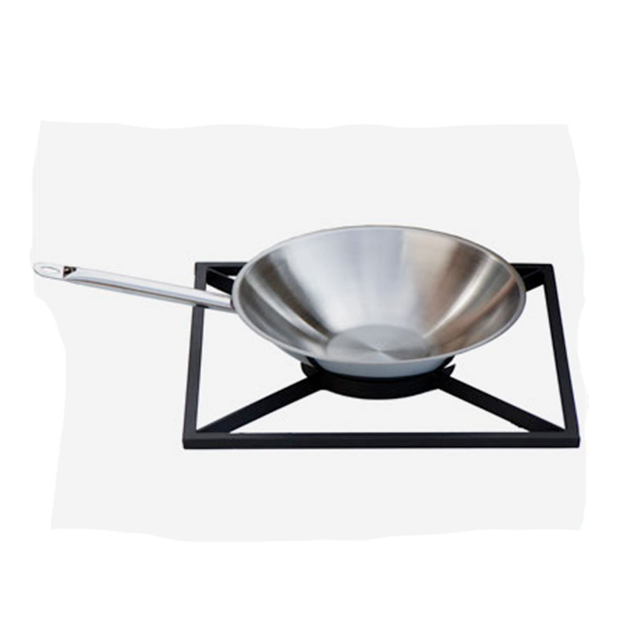 This wok set consists of a steel grill and a stainless steel pan.